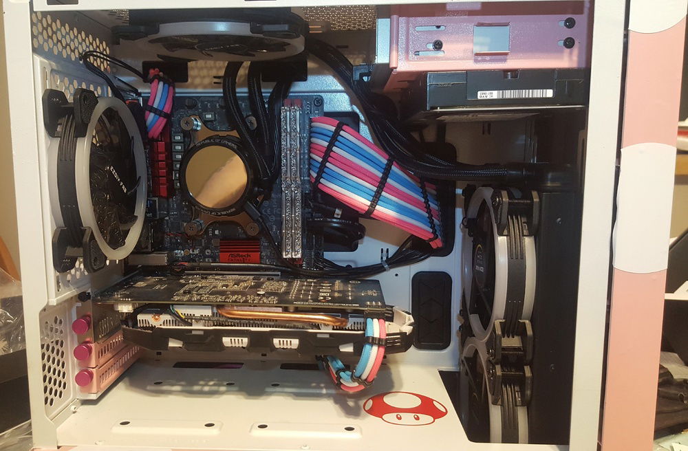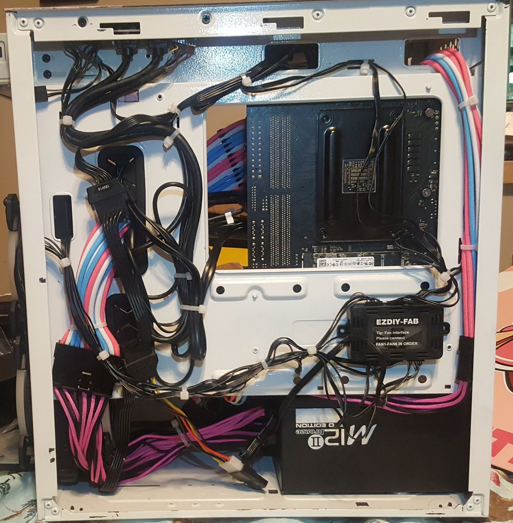 Chinese 6 pin fans were changed to 5 Corsair LL120's and 1 Corsair LL140. Lian Li Strimers were added to the 24 pin, GPU, and EPS.
