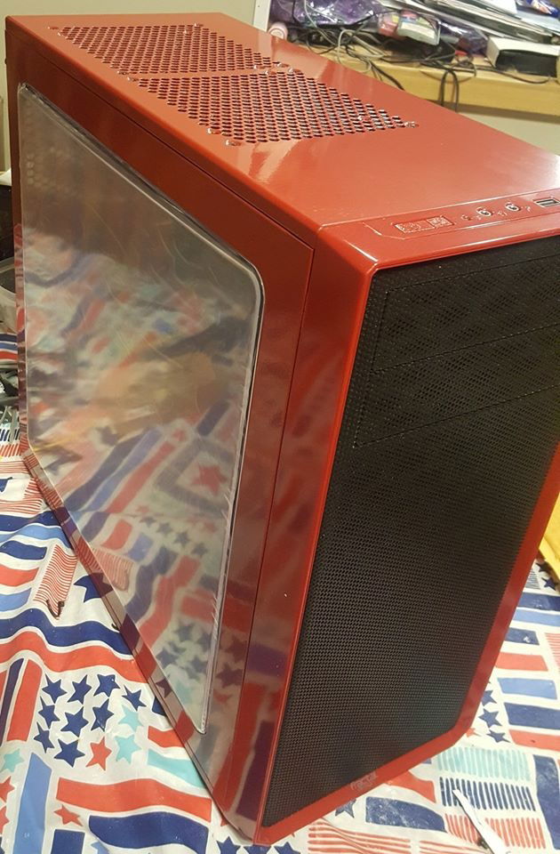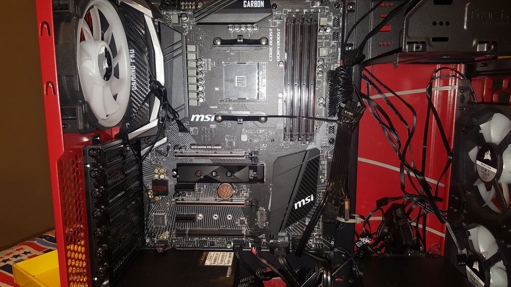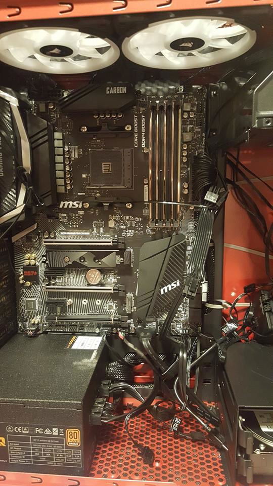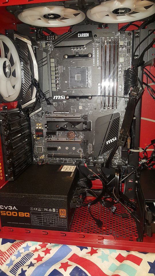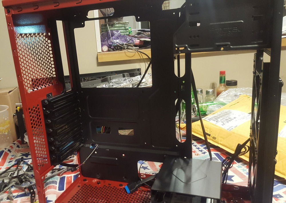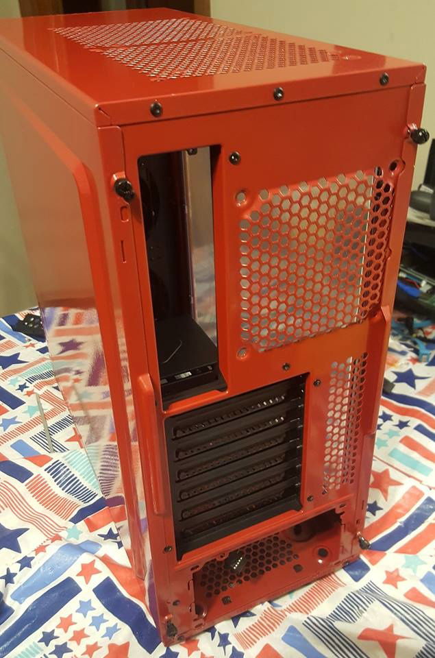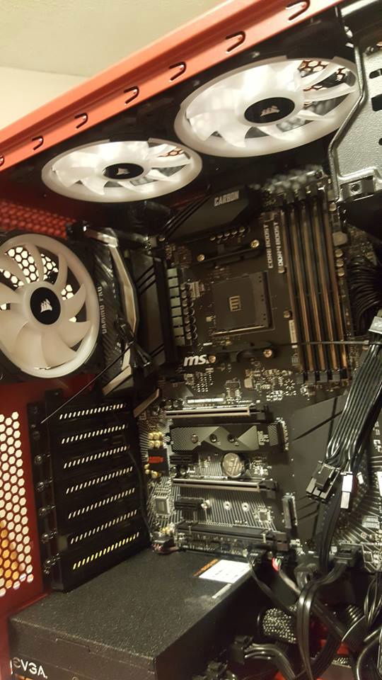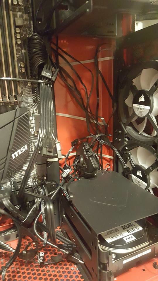 If you wonder why it looks so blurry, it's because I filmed it with the protective side film still on. I wanted to let him peel that back for himself. The Focus G is a pretty nice case to work with if you've done tons of builds. Most all the videos on it say you have to remove the hard drive cage to add a bottom fan. Not true, the hard drive cage can be re-positioned to the front, gaining some much needed breathing room, so I placed a Noctua F12 on the bottom for added intake. I hacked the front bezel by taking all the hold down tabs, pulling them back, removing the filter, then re-assemble with the now free filter positioned on the inside. This is a temp fix till I get him some magnetic ones that will allow the LL120's to shine brighter through the front. Wire management was kind of UGH but do-able with patience and an abundance of tie straps. Plenty of upgrade options for later on, though I'd start beefier on the power supply for good measure.