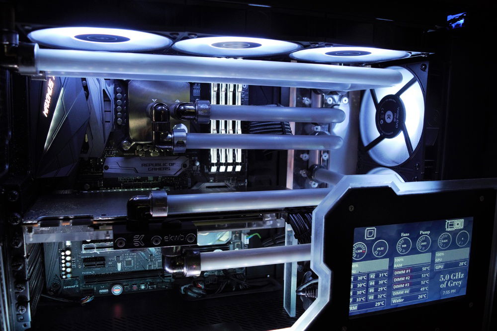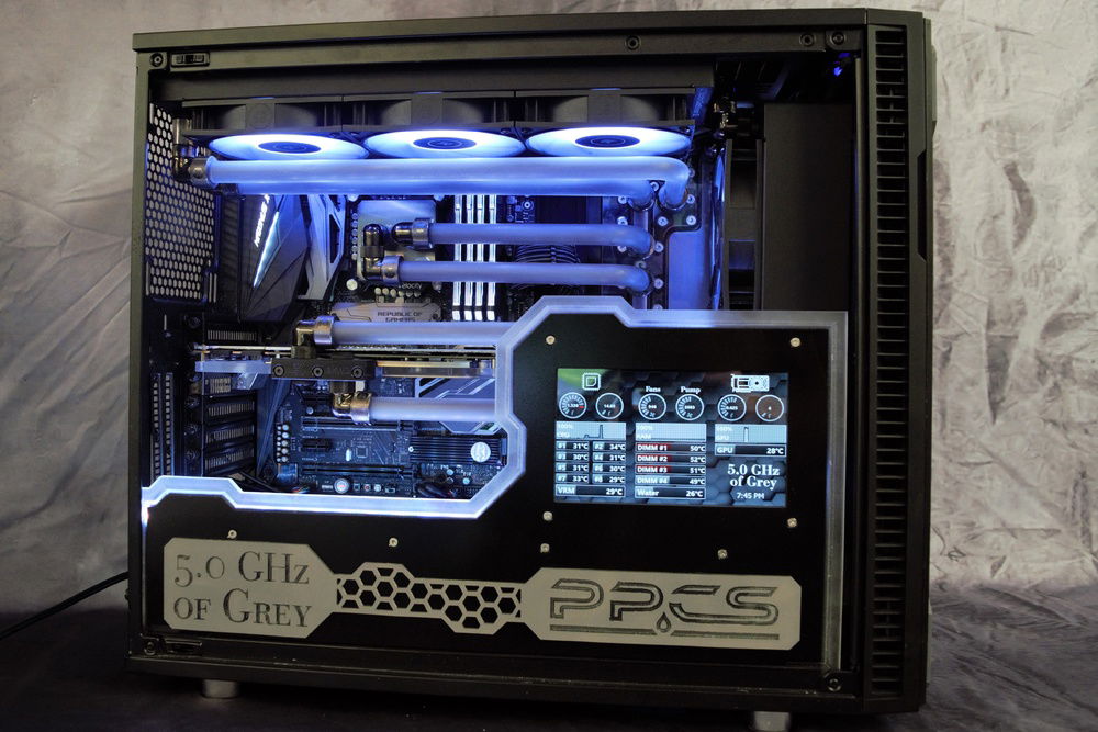 This is my new daily rig that will be replacing my "PPCs Define S" build. It contains some much needed upgrades so I can keep improving my CNC work... which is what some of this build's main featured were made with. In the back, you can see PPCs very first distribution panel made for resale. Helping tidy up the runs and hold some fluid for the loop, this is the heart of the build. The build also features a custom PSU shroud cover with a built in 7" LCD screen. The custom watercooling was very kindly supplied by EKWB. Thanks to ThermalTake, this build has power as well! Thank you Shawn at Fractal Design, for sending me multiple S2's Special thanks has to go out to my boss and CableMod Matt for supplying all the hardware for this build - thanks for the upgrades guys!