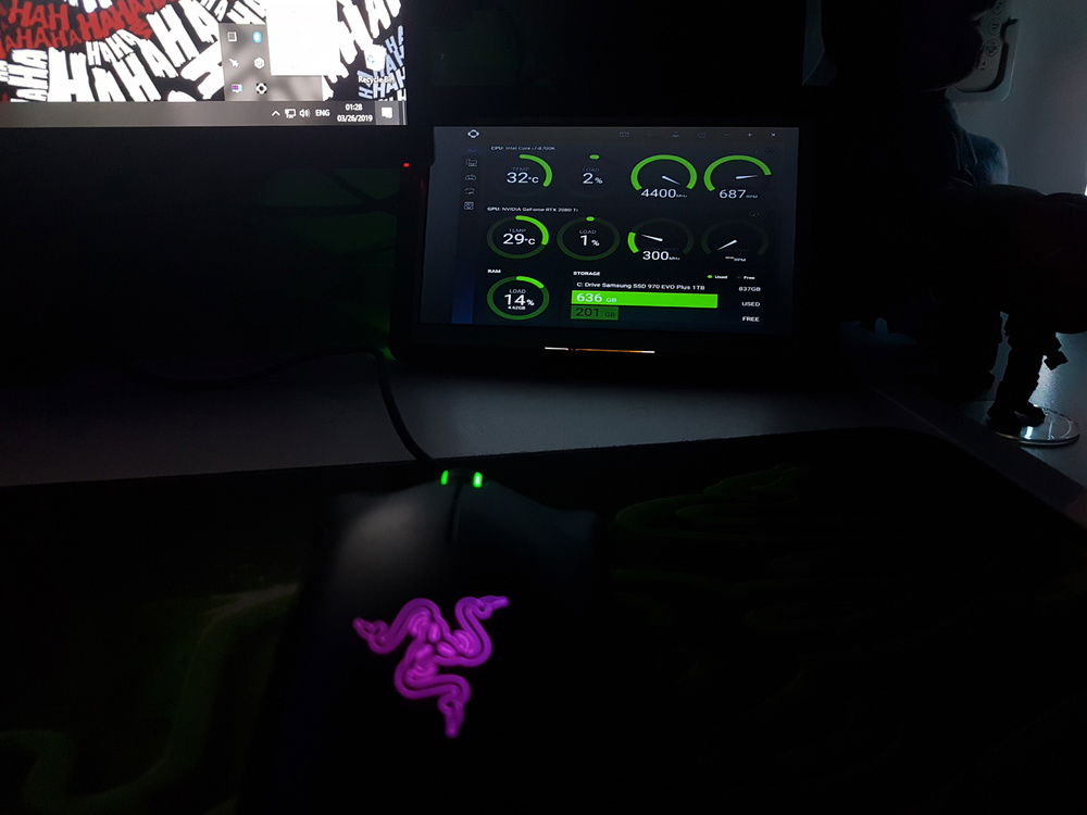 I'm using a second 7 inch monitor from GeekPi for system monitoring (temperatures, clocks and RAM). NZXT CAM software helps to display most of the relevant information and it is cool that they have green theme that matches my build.