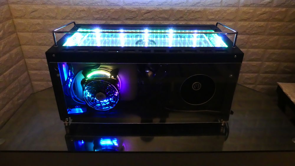 The build is built from a Red Bull Mini Fringe totally stripped and everything removed to convert it to a pc case.