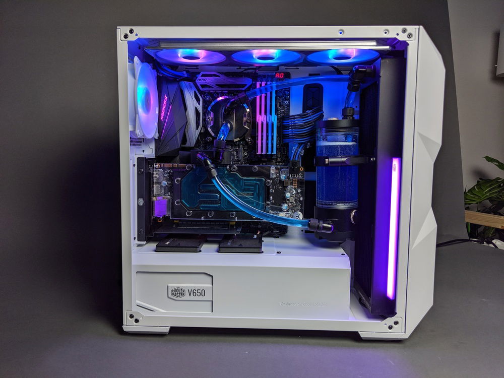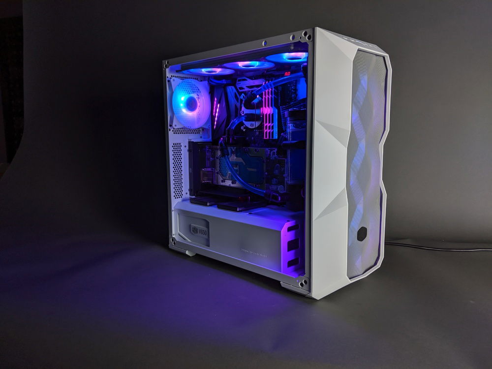Here are a couple of shots of our new beautiful MasterBox TD500 Mesh White. I know it's not the most up to date gaming build but I had a couple of waterblocks laying aroud, so I put them on my testing hardware and slapped everything in this beutiful enclosure.