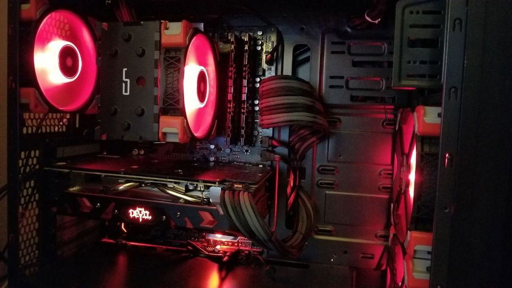 This build has come together a little at a time. I started out with the case, CPU cooler, and PSU that I already had (though I'd like to update at some point). The system is a really decent price/performance all AMD build - Ryzen 5 2600 / Radeon RX 590. I went with the RX 590 over the somewhat better value RX 580 because I'm running an ultrawide monitor and wanted the extra headroom and was willing to pay a small price premium. The red & black theme was determined by the specific GPU I purchased. The Corsair red ML fans were chosen for high performance / low idle noise / furthering the color theme.