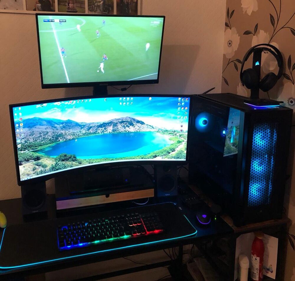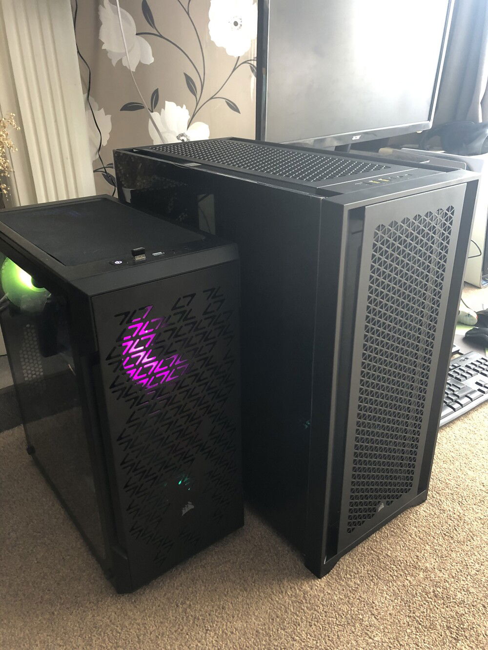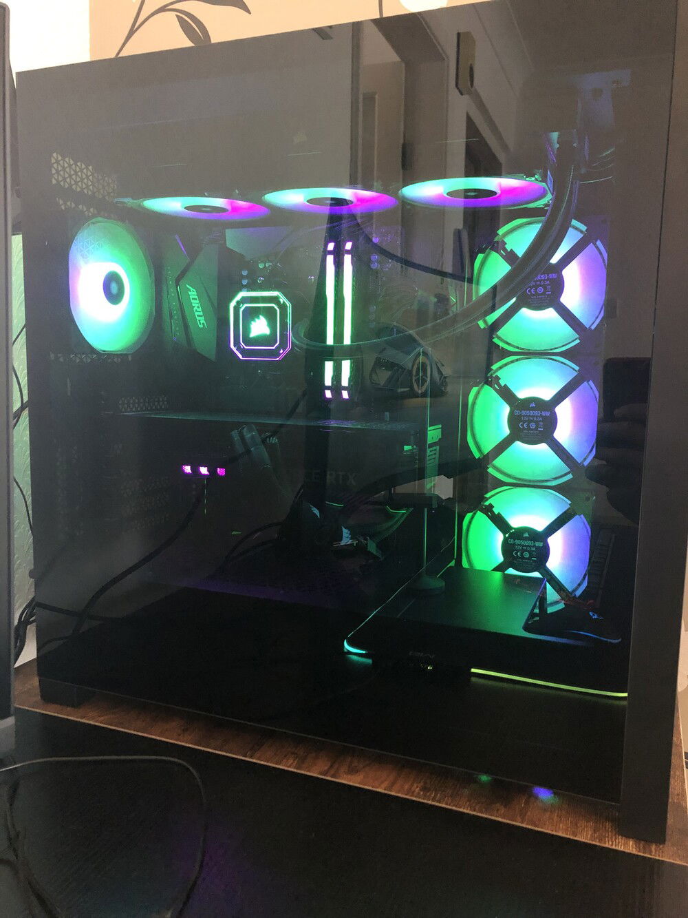 This is a Gaming system I built for my brother last summer. He originally ordered the Corsair 220T RGB which I built his system in but when he managed to get a new GPU it was too long for that case so I switched his build into the Corsair 4000D Airflow. Also swapped his Corsair H100i Elite Capellix for the H150i version with the extra space the case upgrade provided. He's since upgraded to a Ryzen 7 5800X3D and a Gigabyte GeForce RTX 3090 Gaming OC so I shall snap some more pics next time I see him. The Ultra-Wide Quad HD monitor by the way is a Samsung G5 Odyssey 34" G55T.