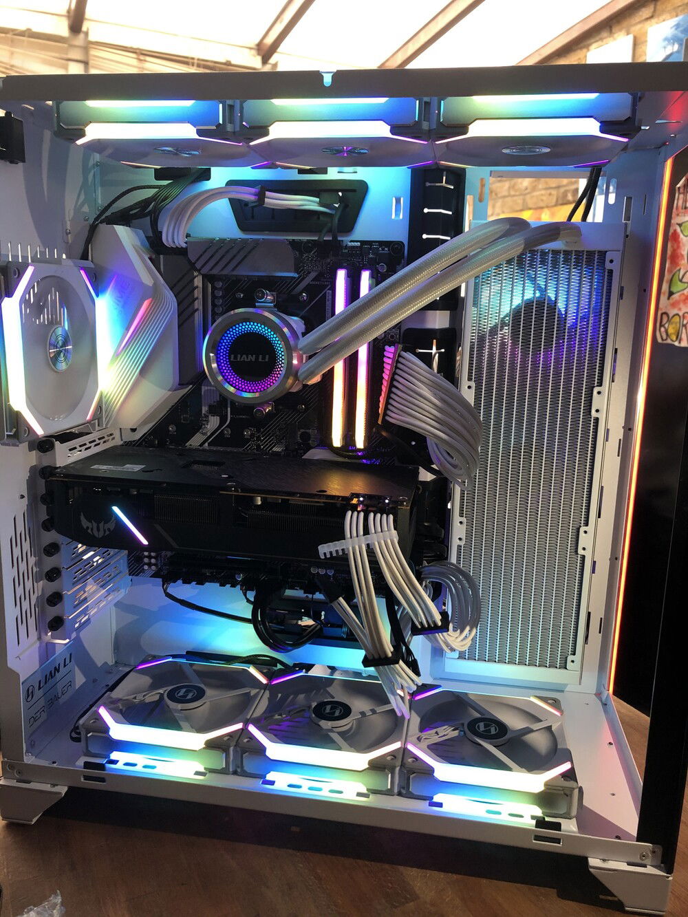 This is a PC I built for a friend in the Lian Li Dynamic o11 XL (White). Parts listed but we initially used his old ASUS TUF RX 5700 XT and later upgraded it to the Galax (KFA2) RTX 3080 Ti HoF.
