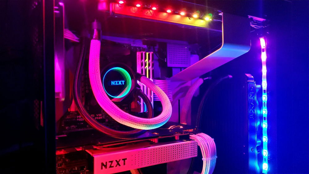 "Gaming battle stations are a work of art" is something I like to say to friends that want to build PCs of their own. (No, this PC case is not sponsored by NZXT, I just really like their products). This PC has been through a lot over the past year and a half. Many different changes to its structure and location but it is finally finished. I have been working on PCs for about 4 years and have loved every second of it, every bump and success in the road has led me to this final Rave inspired build. If you couldn't tell, I do love RGB lighting within the PC. Custom bamboo desk with included drop case, hand built by me and my buddy 2 years ago and still holding strong, as well.