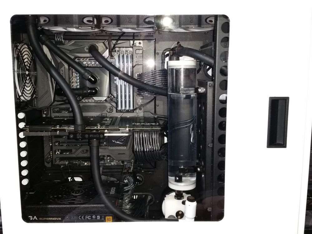 It has actually come a very long way over the past few years. It started out in a vengeance C70 military green case with a standard cpu air cooler & blower GPU card & has turned into a fully watercooled (including motherboard VRM) pc with a great overclock. I may eventually switch to hard tubing but I actually prefer soft tubing in many ways. A very expensive GPU upgrade is first on the list of upgrades (If Nvidia ever decides to sell them again) and when I can afford something significantly better than my current 980ti K|NGP|N.
