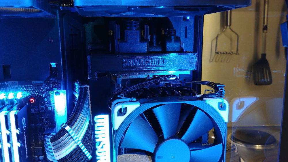 I'm using a Lian Li O-11 Dynamic, and build a custom mount so that the GPU can be mounted next to the motherboard. I remade the motherboard shroud and other bits, however these are just attempts and the final designs aren't done yet.