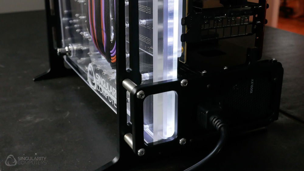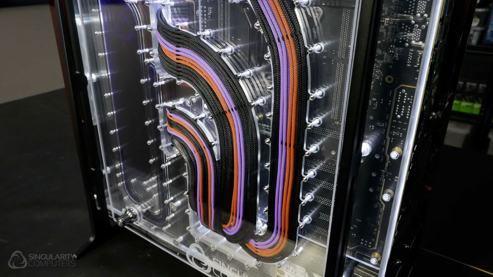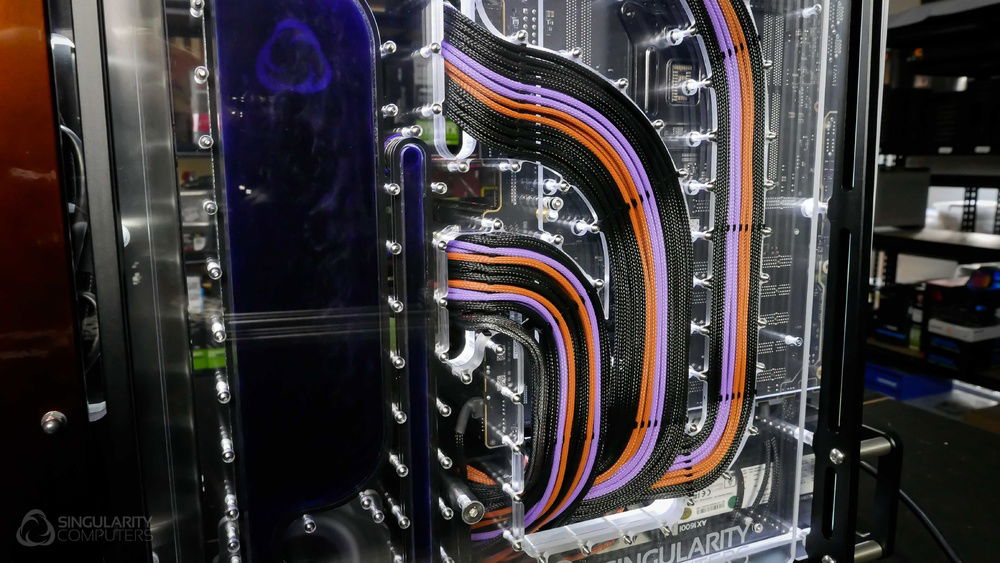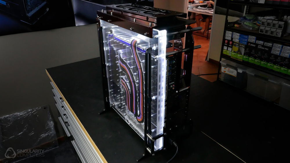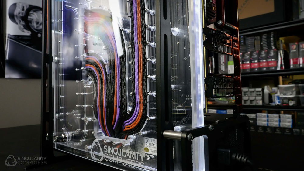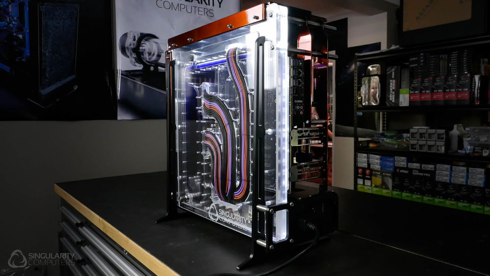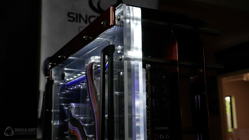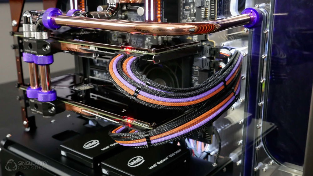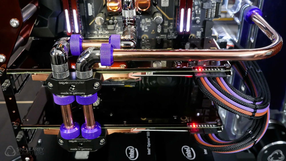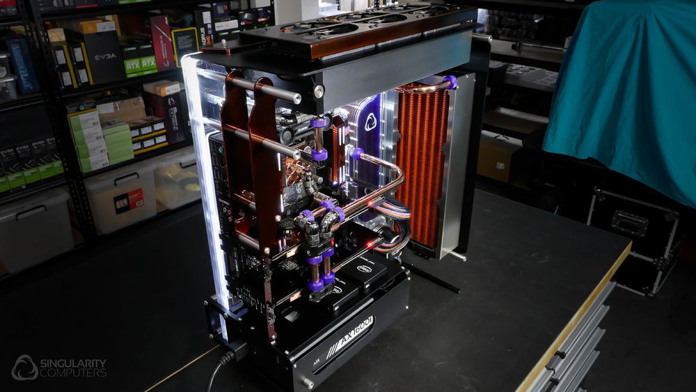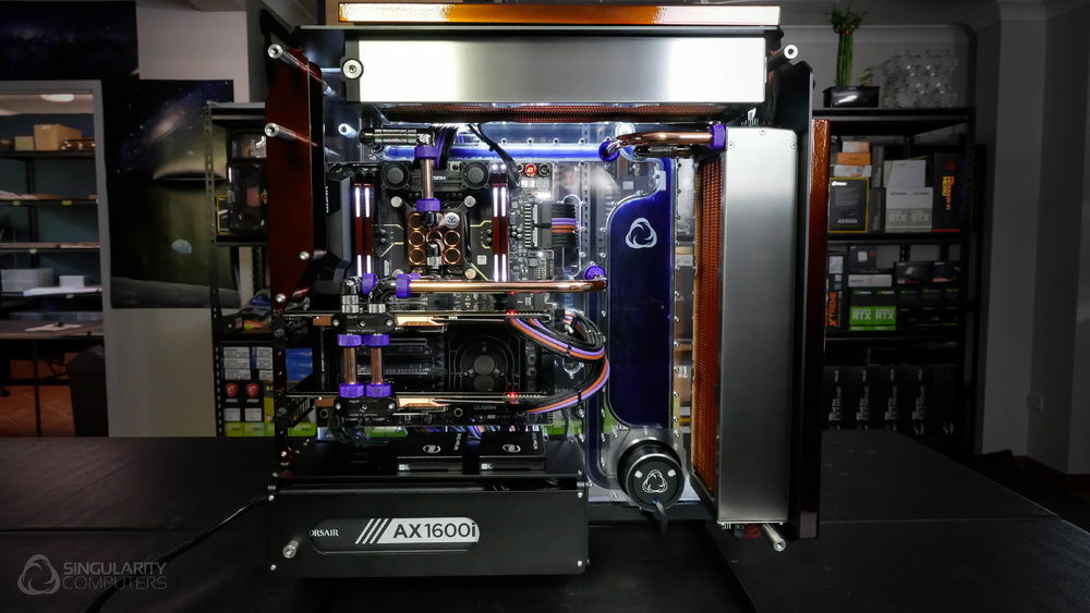 From the team who created Spectre we bring you Copperiedus. A customized Spectre 1.0 with custom external fan shrouds for the externally mounted fans. This allowed us to install radiators thicker than 60mm. Copper water-blocks, radiator fins and tube. The rest of the copper colored components are done in DNA Virtual Chrome paint and a few different Candy colors to achieve the copper special effect. Finished off with MDPC-X Sleeve and Mayhems coolant.