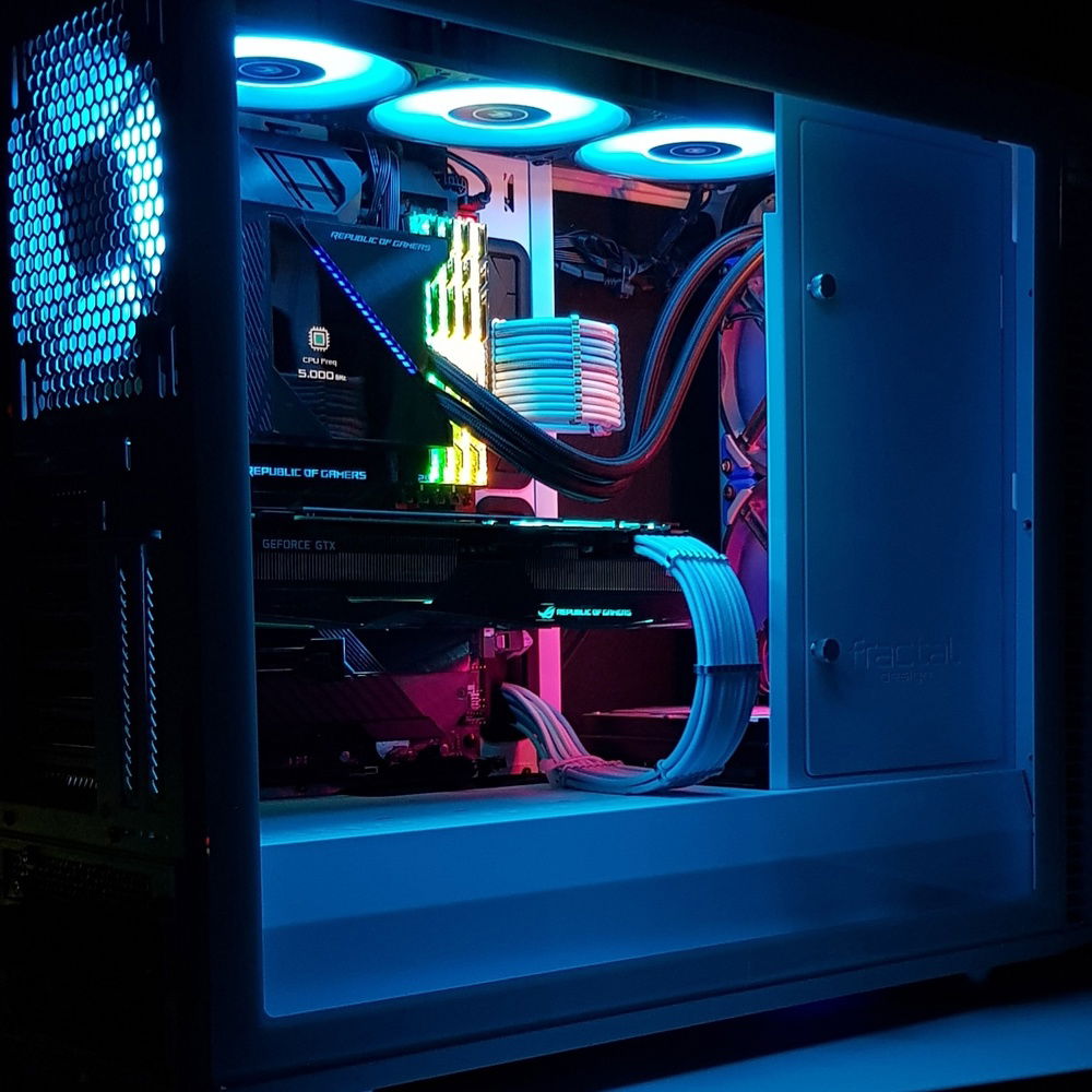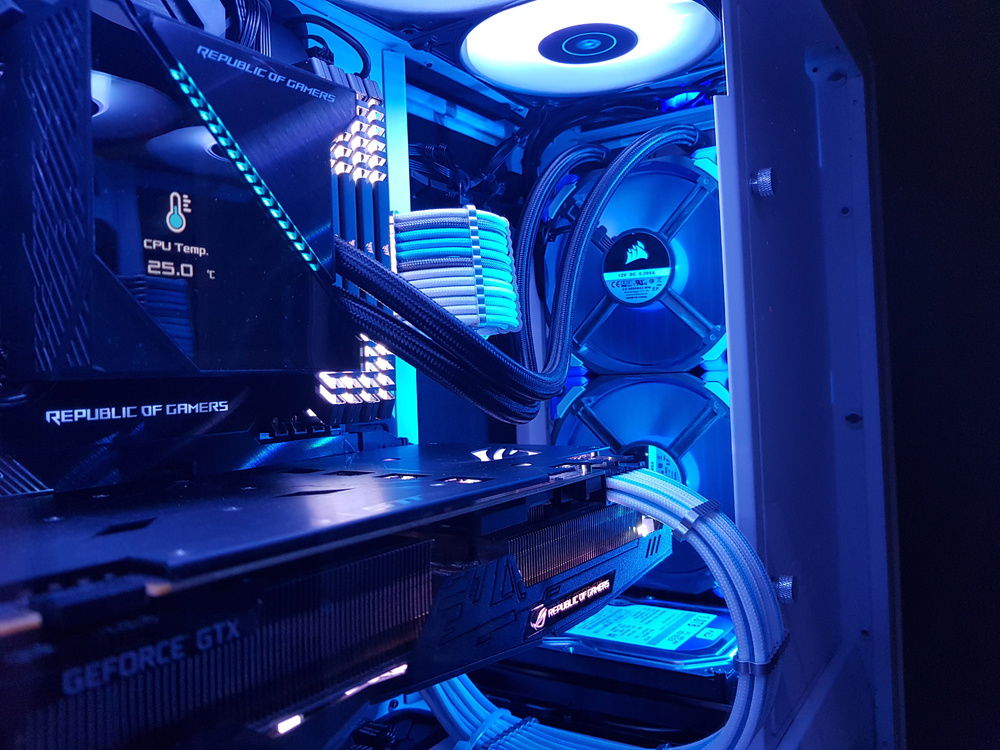 Obviously, I went for a winter theme. The goal was to keep it as clean as possible, Ensuring the hardware colors remained a single color, black in this case. Adding a little variety using the silver thumb screws, cable combs and two lines of cable on the 24 pins.