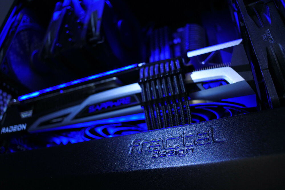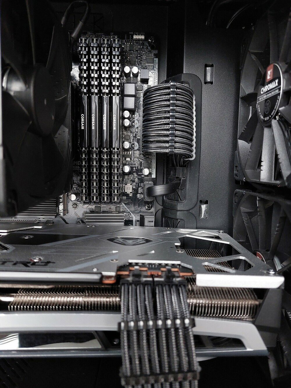 - Dremeled out a cut for the PCIe cables using a spare rubber grommet also removed from the Fractal Define C Mini