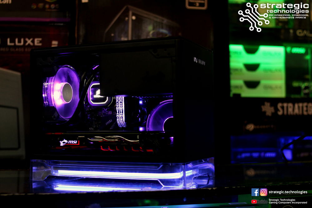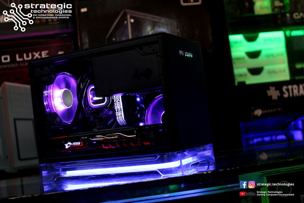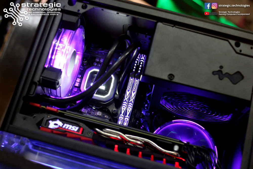 Intel Core i7 8700k Processor MSI Z370i Gaming Pro Carbon AC Mini ITX Motherboard 16GB Team Group Xcalibur RGB DDR4 Memory (8GB x 2) 3600Mhz 480GB TeamGroup P30 M.2 NVME SSD 1TB Seagate SSHDD 2.5" Firecuda MSI Gaming X NVIDIA Geforce GTX 1080 8GB Graphics InWin A1 Case with integrated 600Watts 80+ Bronze Power Supply Corsair H60 All In One Liquid CPU Cooler 2018 Edition InWin Polairs RGB Sync LED Fans 12V 120mm x 4 See Bee RGB Splitter See Bee Fan HUB