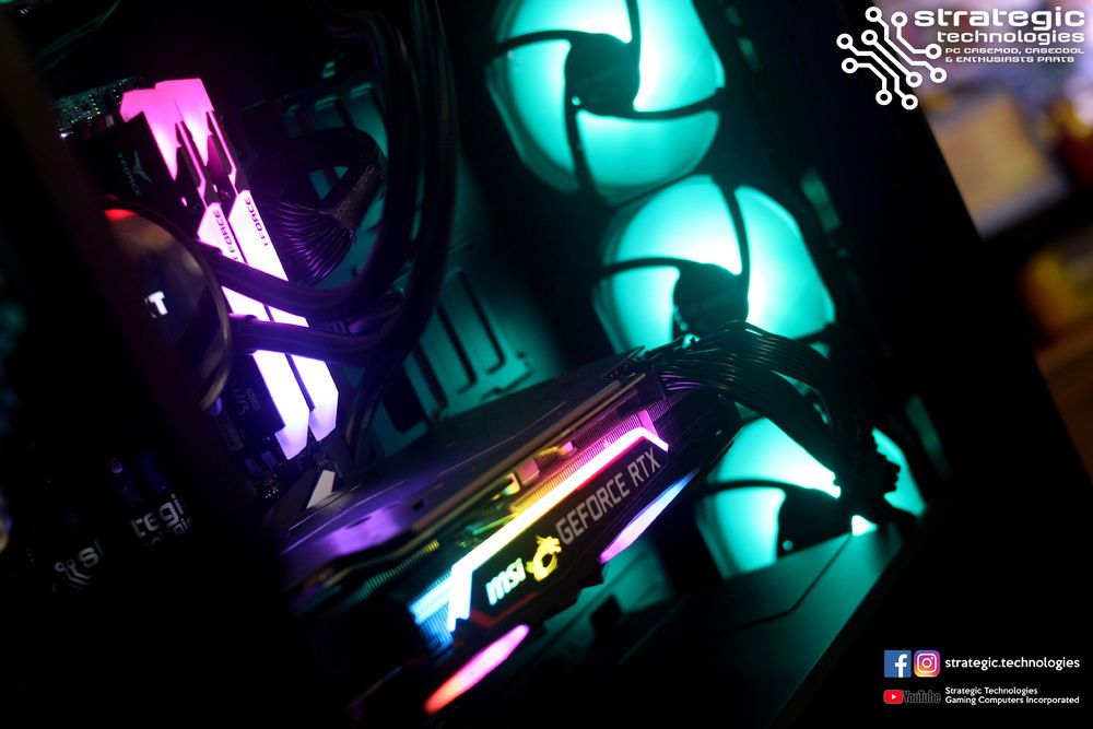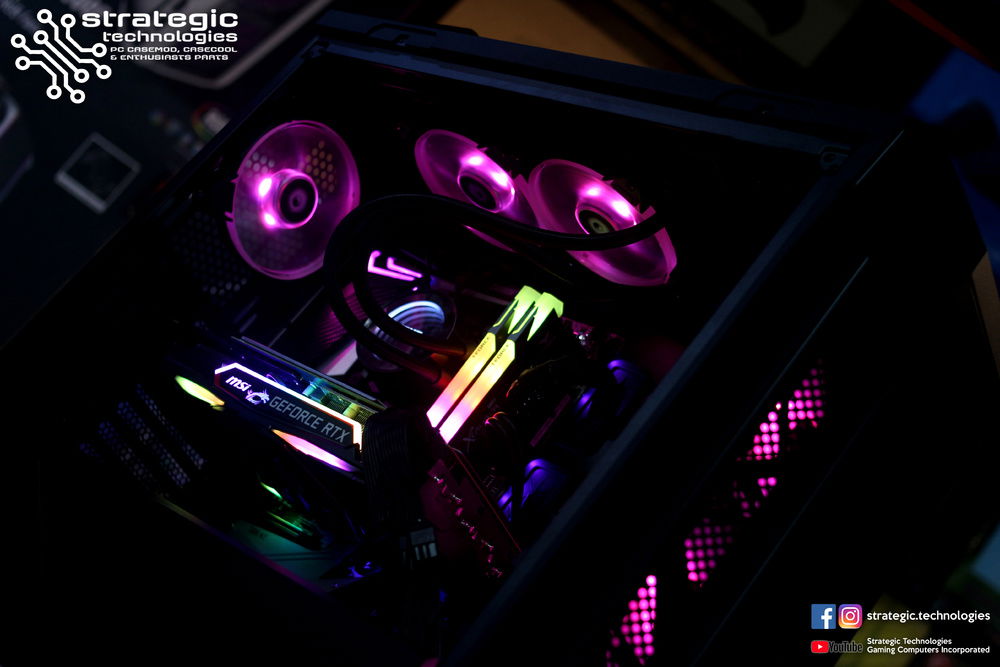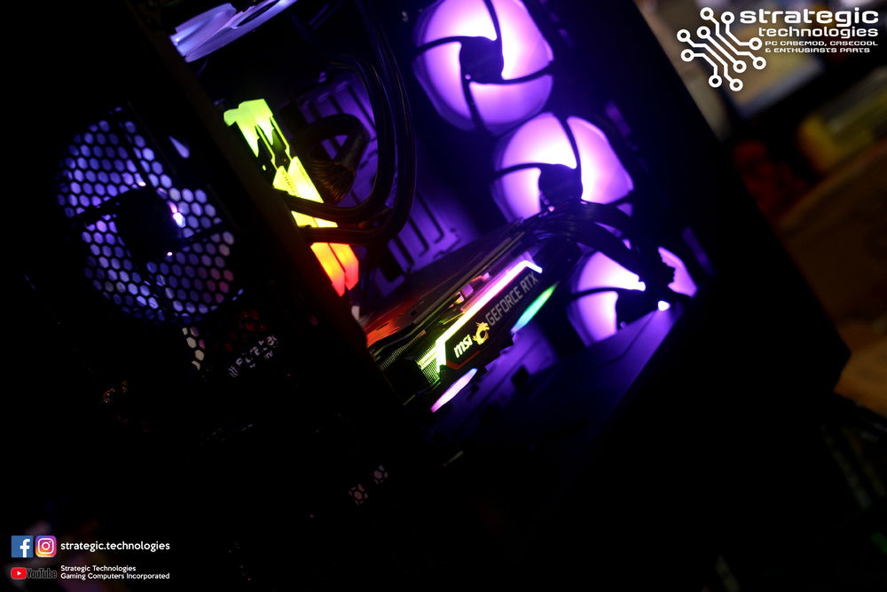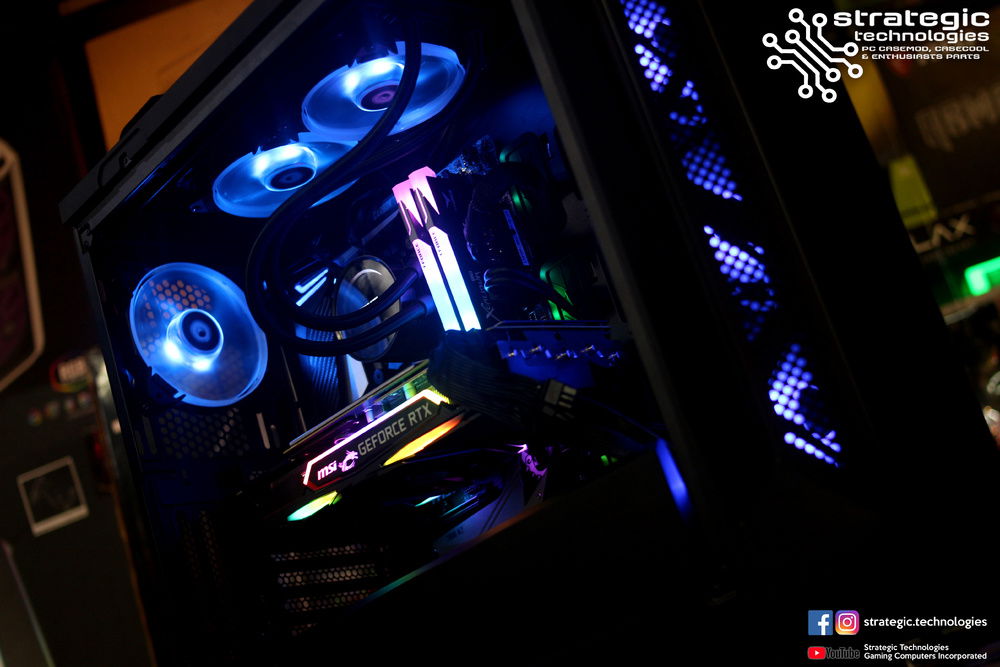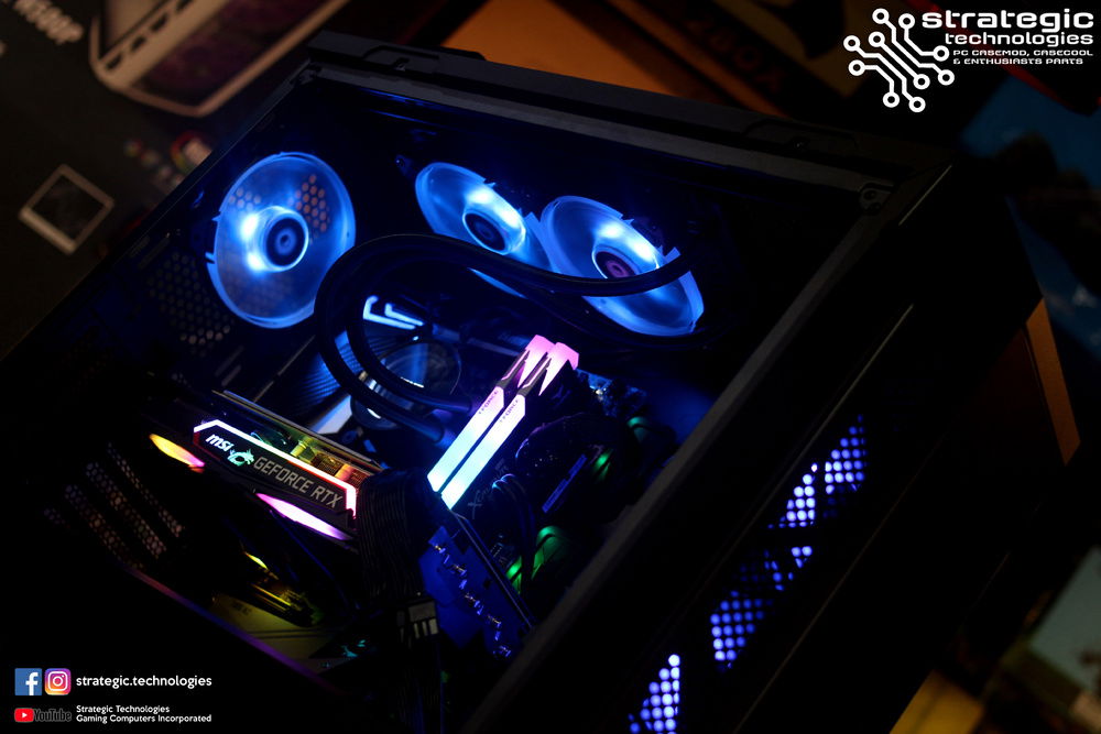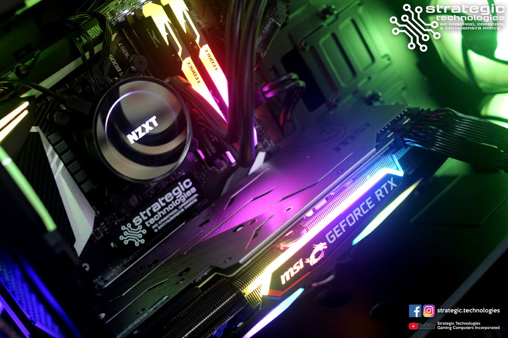 Intel Core i7 8700K Processor MSI MPG Z390 GAMING PRO CARBON AC Motherboard 16GB Team Group XCalibur RGB (8GB x 2) DDR4 3600Mhz Black Frame Memory 250GB Samsung 970 EVO NVMe M.2 SSD 480GB Crucial BX500 2.5inch SSD MSI NVIDIA Geforce RTX 2080 Gaming X Trio 8GB Graphics Asus GT501 TUF Midtower Gaming Case Coolermaster MWE GOLD 750W 80+ True Rated Full Modular Flat Black Cables PSU NZXT Kraken X52 All In One Liquid Cooling ID-Cooling SF12025 RGB Trio 3 pack fans See Bee Fan Hub x 2 See Bee RGB Hub Wire x 2