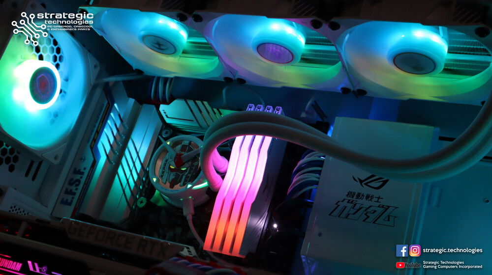 ASUS ROG Strix LC 360 RGB GUNDAM EDITION all-in-one liquid CPU cooler with Aura Sync, and triple ROG 120mm addressable RGB radiator fan