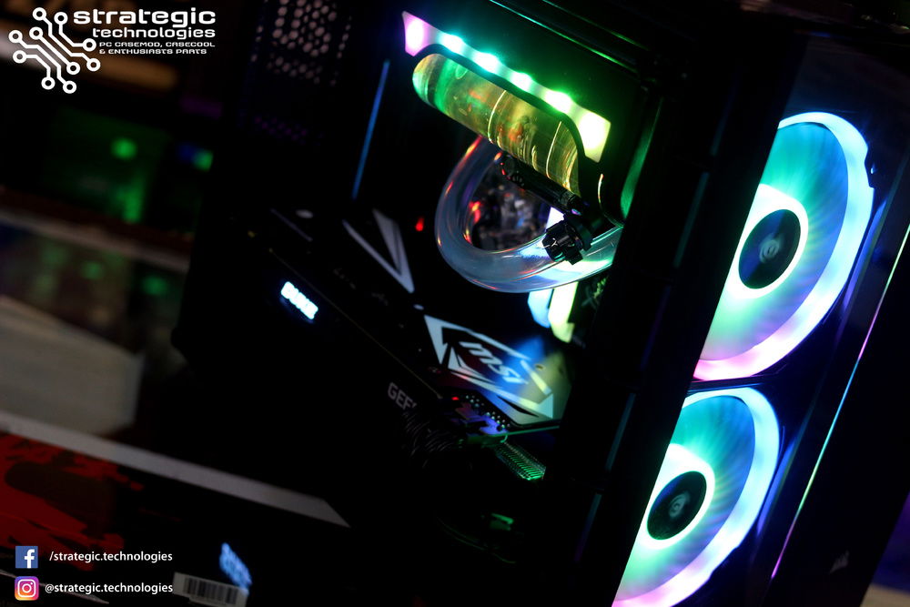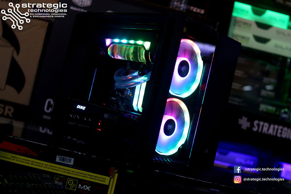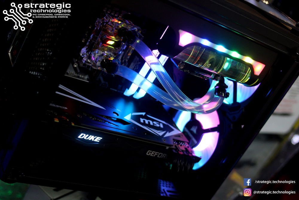 Intel Core i7 8700K Processor MSI Z370M Mortar Motherboard 16GB Team Group Xcalibur RGB Memory (8GB x 2) 3600Mhz DDR4 General Edition 240GB Team Group L3 EVO SSD 1TB Western Digital Blue Hard Drive Corsair Crystal Series 280X Black mATX Chassis Swiftech H240 X2 CPU Liquid Cooling System MSI NVIDIA Geforce GTX 1070Ti Duke 8GB Seasonic M12-II EVO Bronze 620W 80+ Full Modular Flat Black Cables PSU Corsair LL140 Dual Light Loop RGB with Lighting Node Pro 140mm 4pin PWM Connector Case Fan x 2