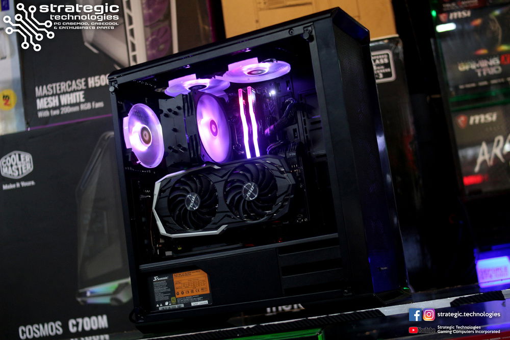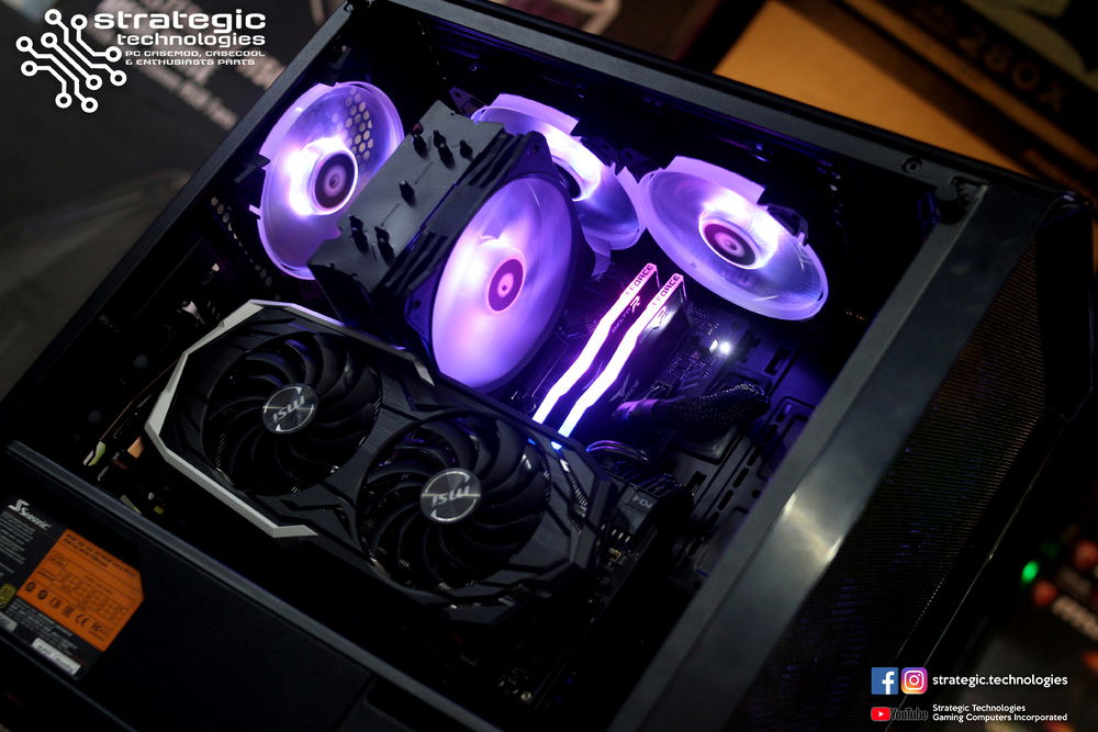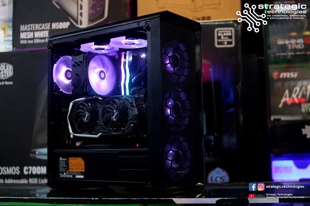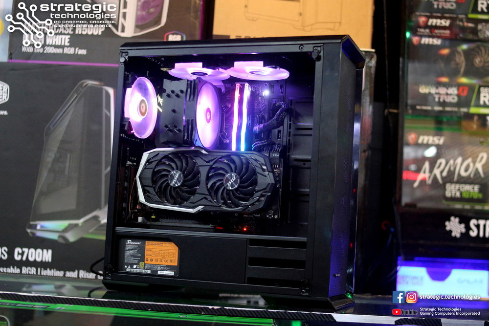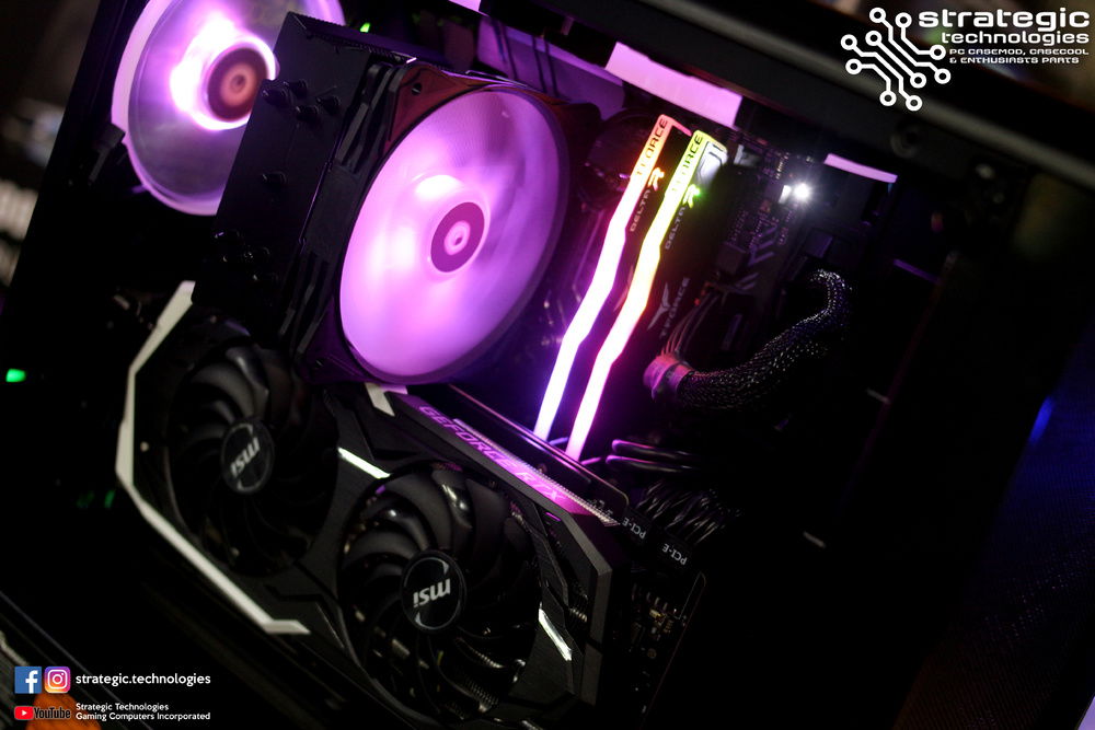 Intel Core i7 8700K Processor (stock shortage on i7 8700) Asus H370-F Strix Gaming Motherboard 8GB Team Group DELTA RGB (2x4GB ) 2666mhz DDR4 Memory Samsung 860 EVO 500GB 2.5" SSD Tecware NEO Tempered Glass Midtower Chassis Seasonic M12-II EVO Bronze 750W Full Modular Flat Black Cables PSU ID Cooling SE214-RGB Tower CPU Cooler MSI RTX 2070 8GB Armor Graphics ID-Cooling SF12025-RGB Big Airflow LED Fans x 6 See Bee RGB Hub Wire See Bee Fan Hub Phanteks Vertical GPU Mount