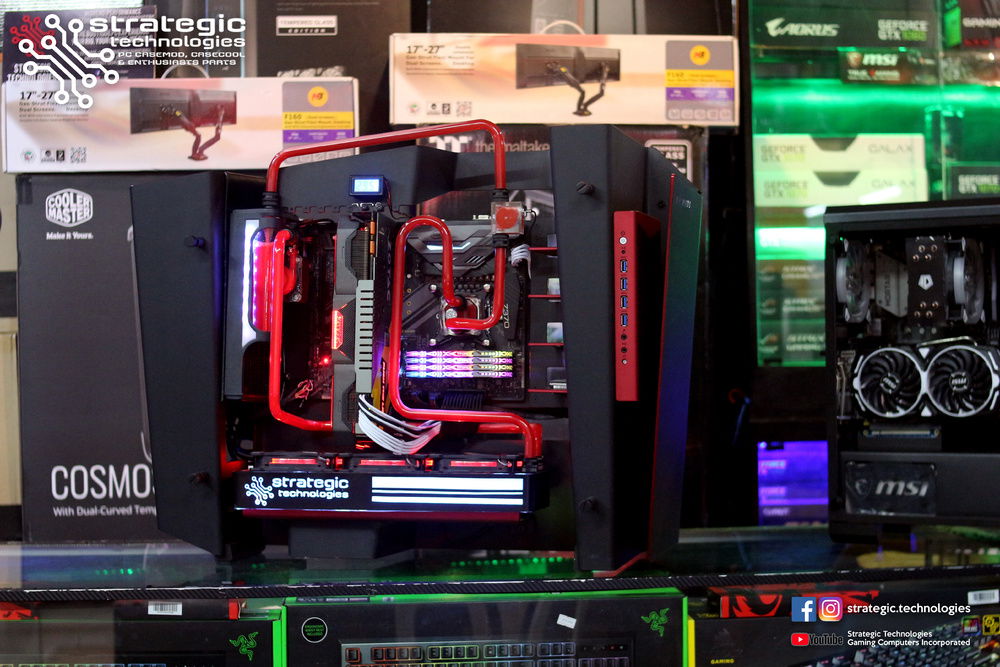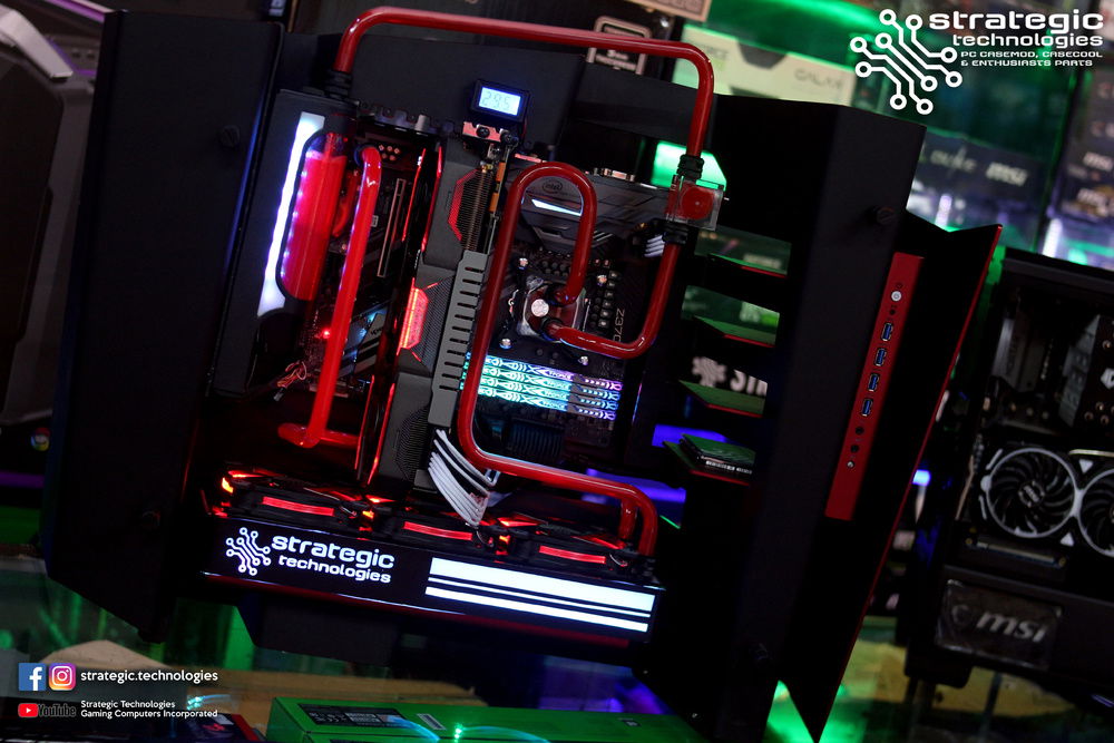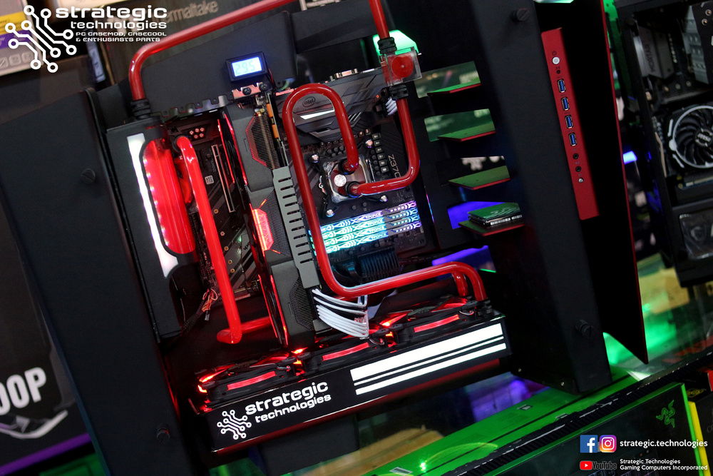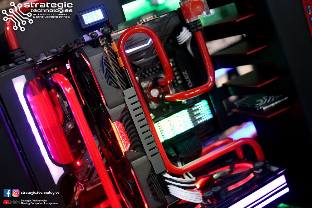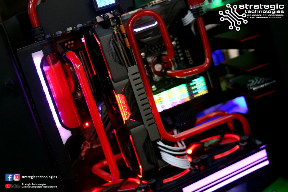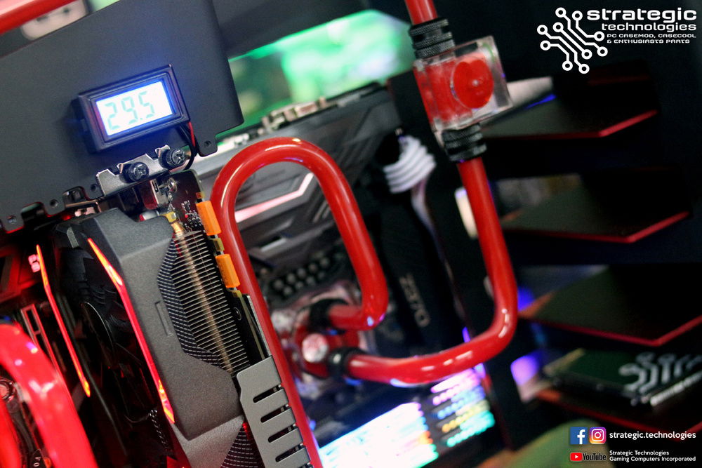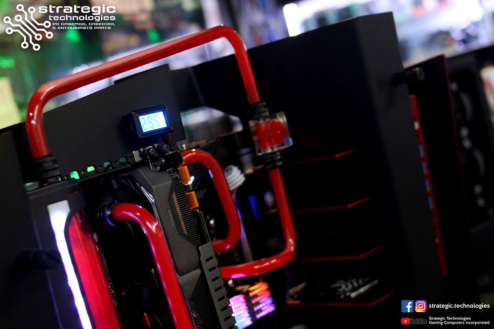 Prestige Edition modified pass-through reservoir and radiator with 5 Volts RGB LED addressable lighting Custom acrylic 280mm radiator mounting Custom radiator shroud with 5 Volts RGB LED addressable lighting
