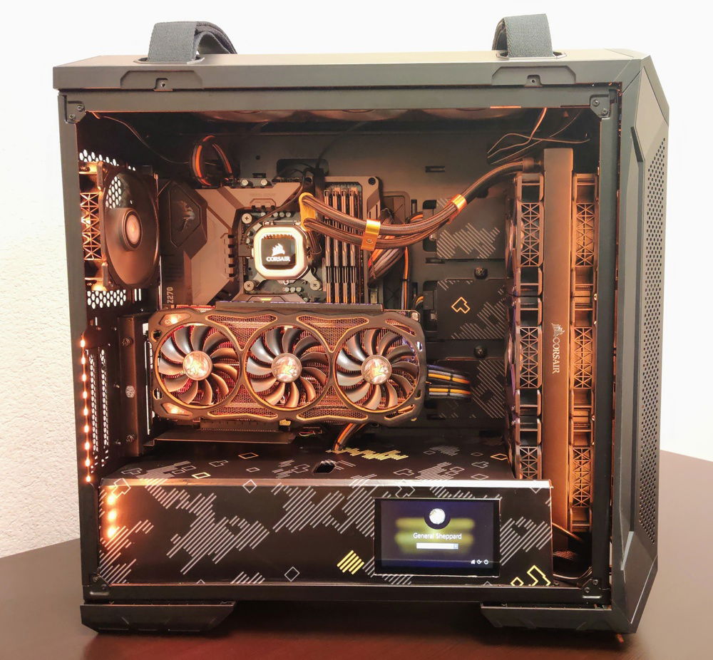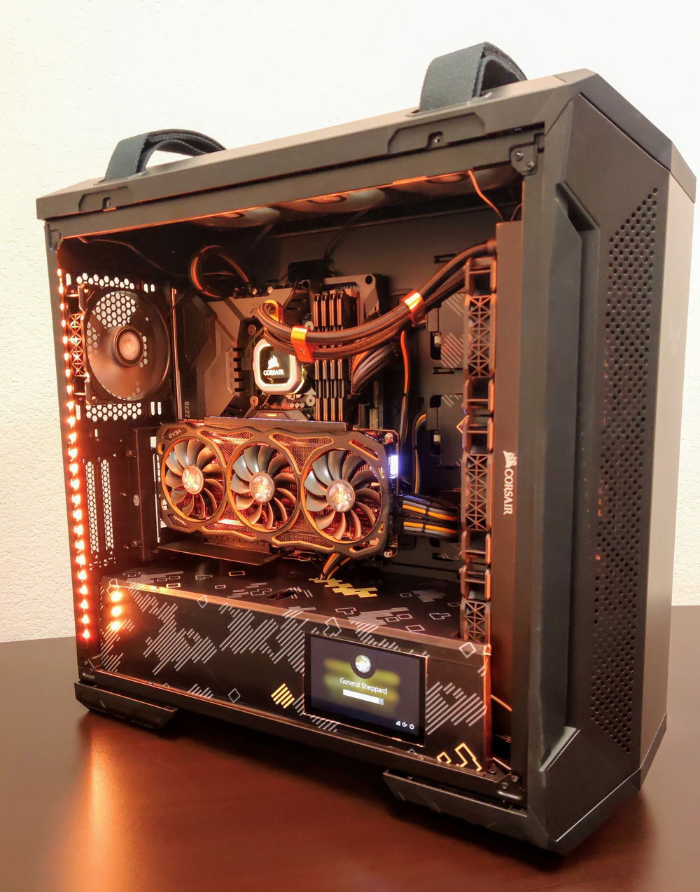 - Fans: 10x Corsair ML120 (Magnetic Levitation) Fans, 75 CFM - Push/Pull Config on Radiator