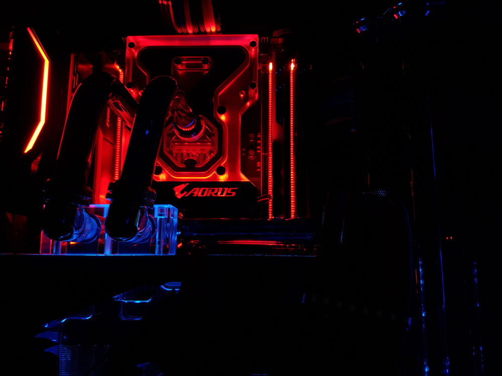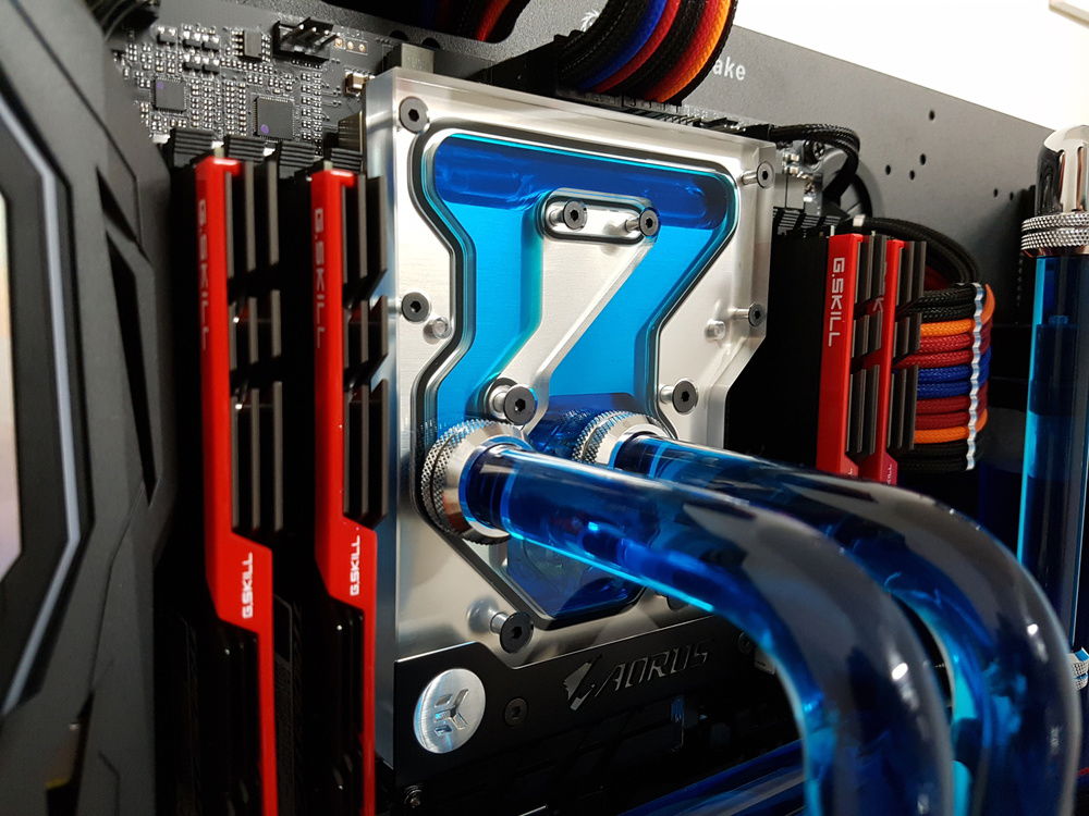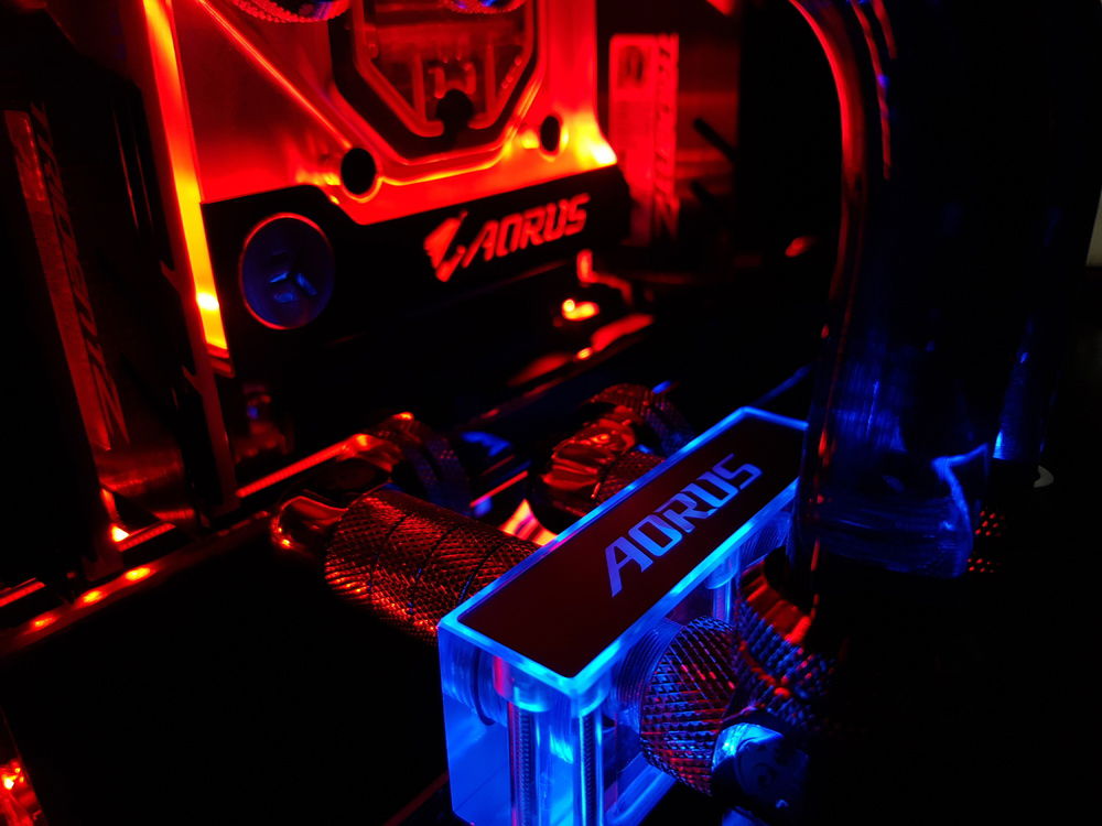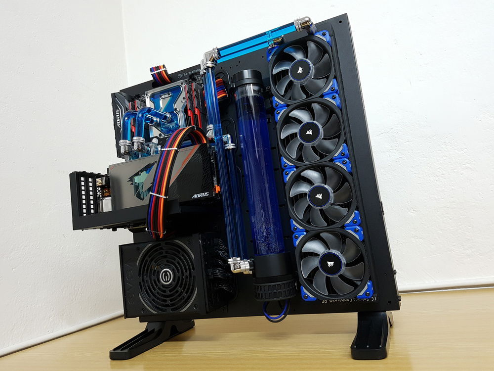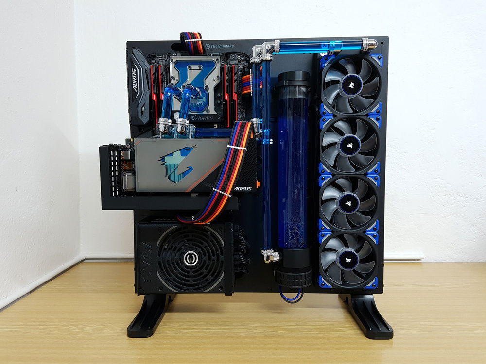 Custom watercooled project for customer based on Gigabyte AORUS components, Thermaltake W100 case, EKWB / Bitspower watercooling parts and our own custom PSU cables.