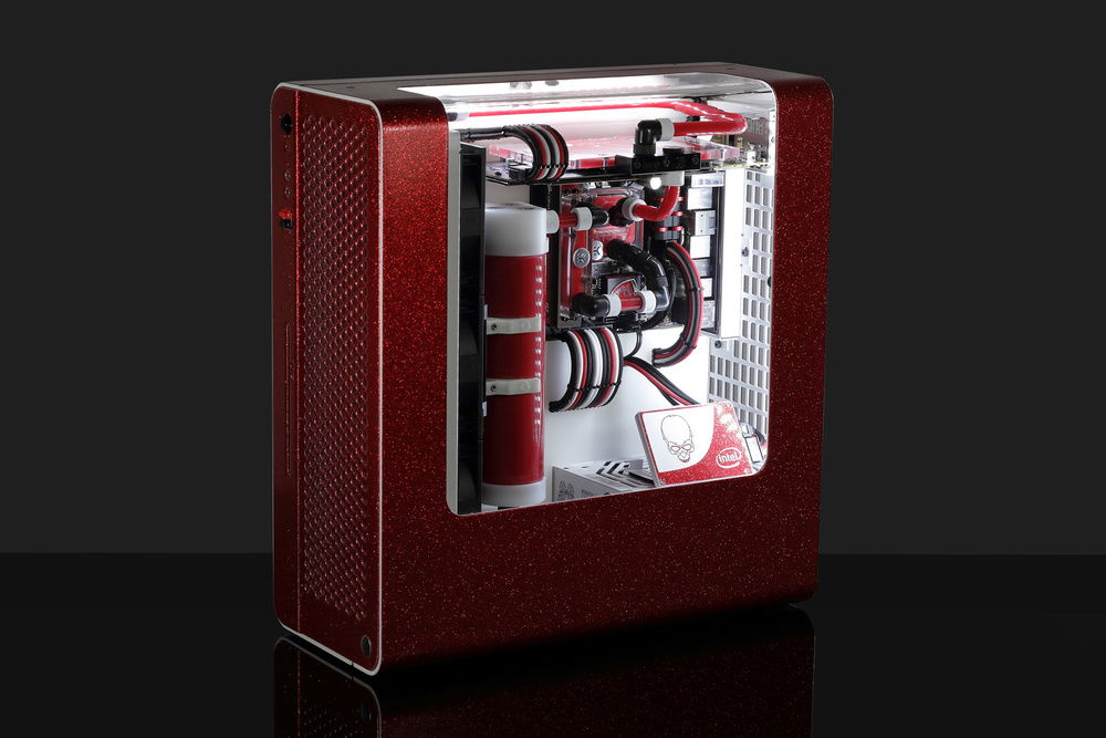 Presentation project based on limited PC case EK Water Blocks Vulture (20/50). MSI and Intel Czech / Slovakia companies provided the HW equipment for project. Vulture Red Flakes was built to present the possibilities for watercooling, custom-made cables and cutting-edge modifications