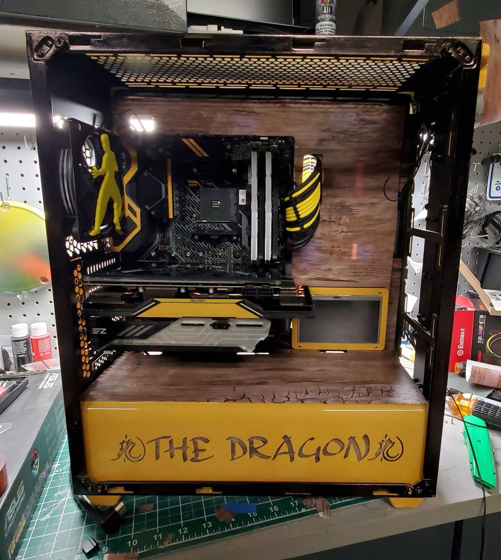 The inside i kind of did my take on the inside of a Dojo....so i did a wood wrapping. i think that will deliver a contrast to the outside of the case and assist in tying the 2 styles together.